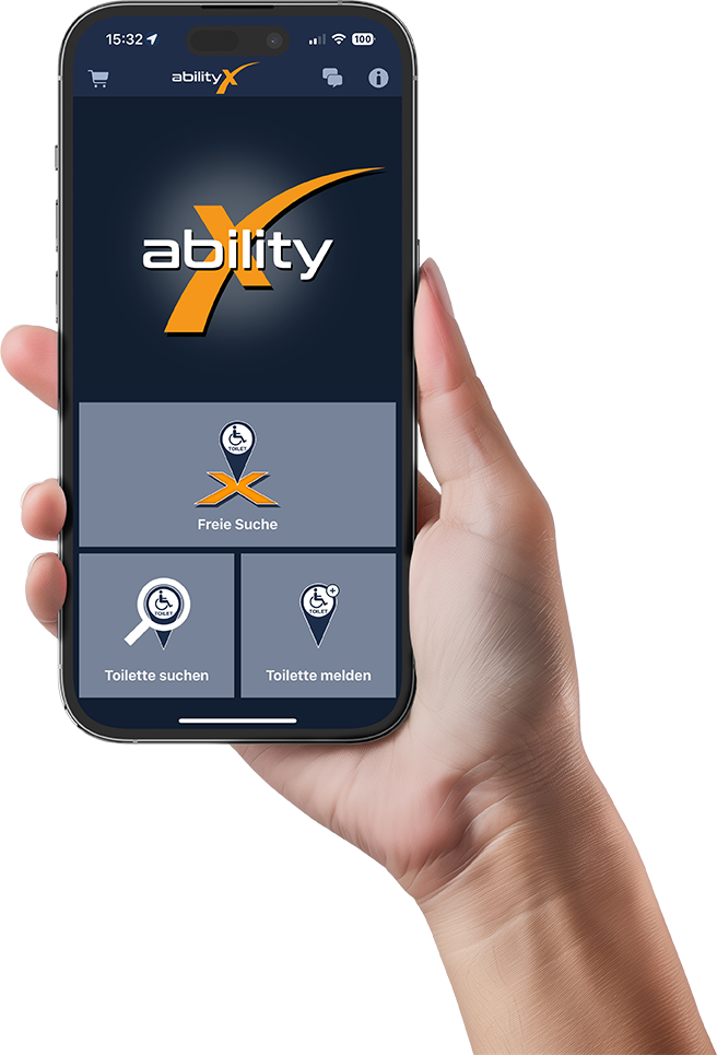 Lade die abilityX App jetzt kostenlos herunter und finde barrierefreie Toiletten – genau nach Deinen Bedürfnissen.