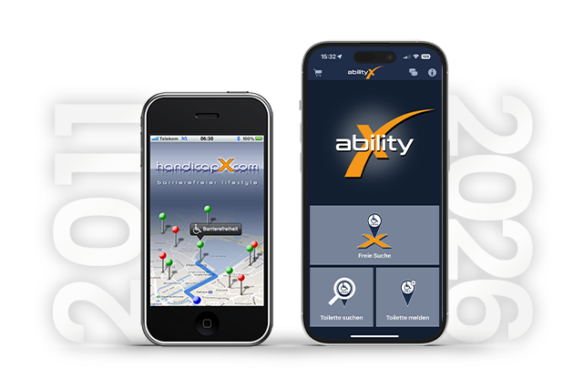 Seit über einem Jahrzehnt entwickeln und betreiben wir digitale Lösungen rund um barrierefreie Toiletten. Was 2011 als HandicapX App begann, ist heute abilityX – die spezialisierte App für verlässliche Informationen zu barrierefreien WC-Standorten.